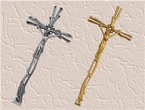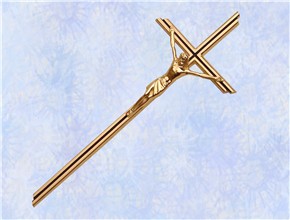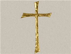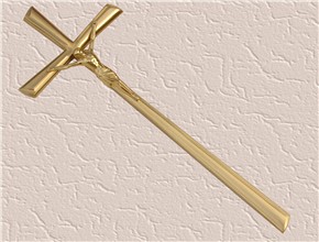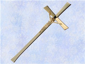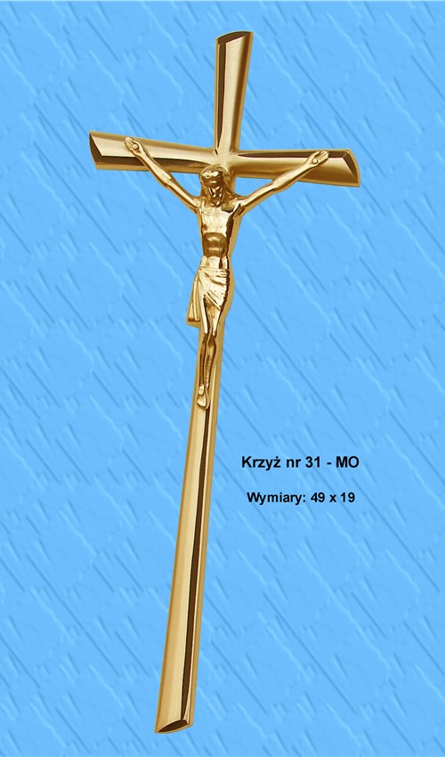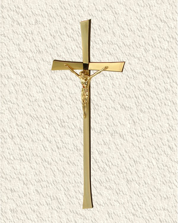Krzyż wykonany z mosiądzu. Polakierowany bezbarwnym lakierem proszkowym.