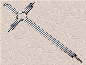 Krzyż z pręta nierdzewnego Ø 10 i pręta mosiężnego Ø 5.