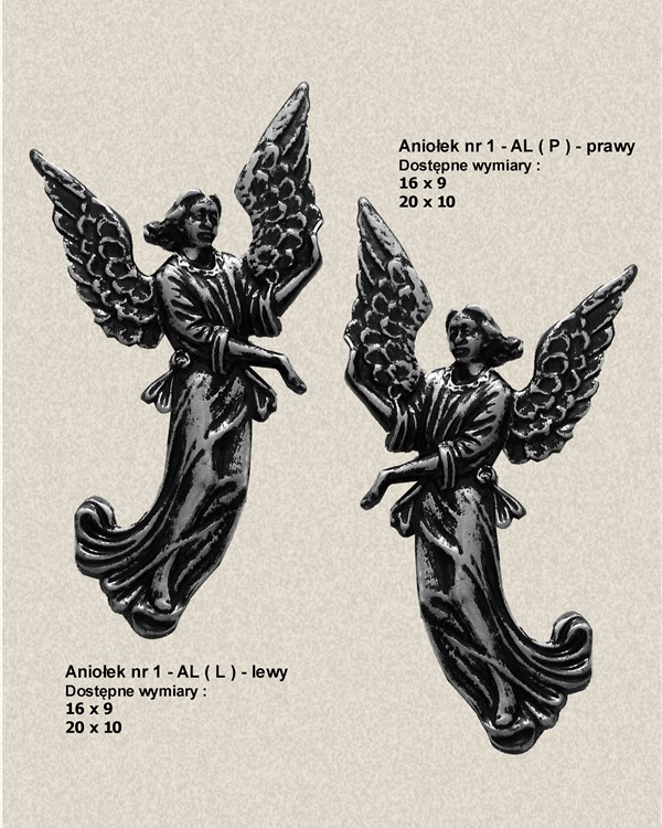 Aniołek nr 1 - AL wykonany z aluminium, polakierowany bezbarwnym lakierem proszkowym.