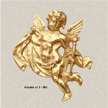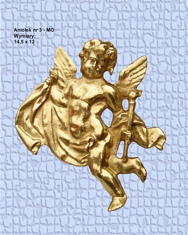 Aniołek nr 3 - MO wykonany z mosiądzu, polakierowany bezbarwnym lakierem proszkowym.