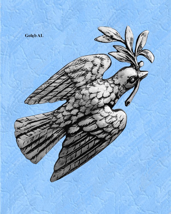 Gołąb wykonany z aluminium.