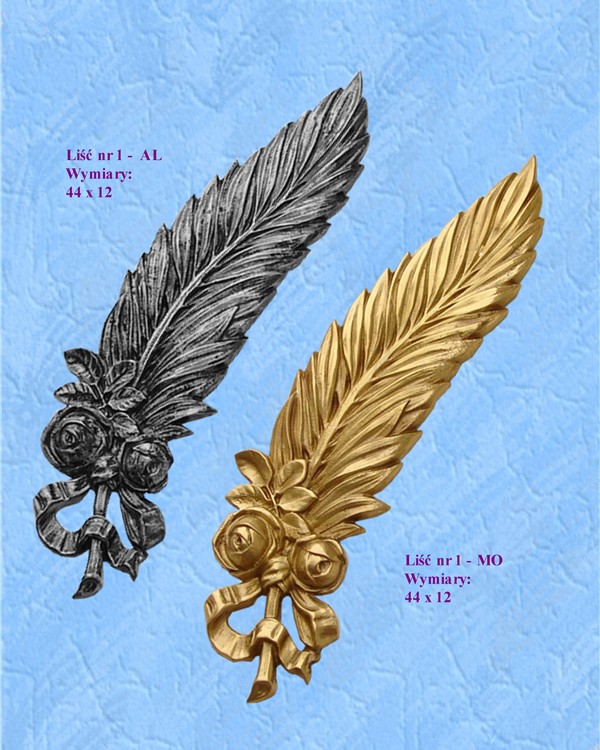 Liść aluminiowy i mosiężny polakierowane bezbarwnym lakierem proszkowym.