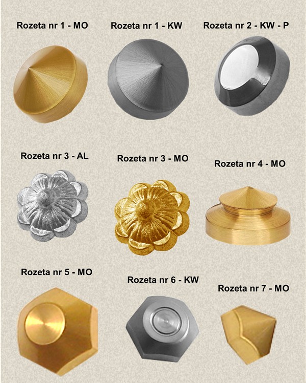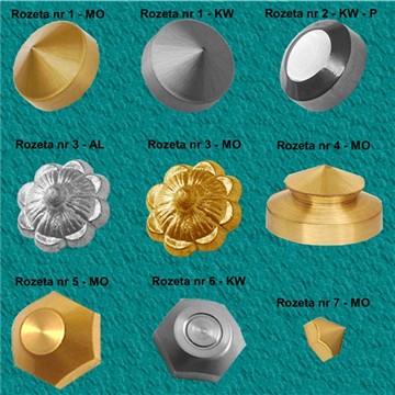 Różne rozety z aluminium, mosiądzu i stali nierdzewnej.
