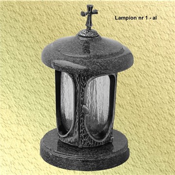 Lampion mosiężny z granitowymi krążkami. Szybki mogą być żaroodporne.