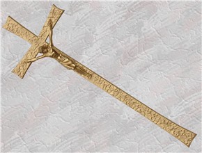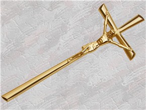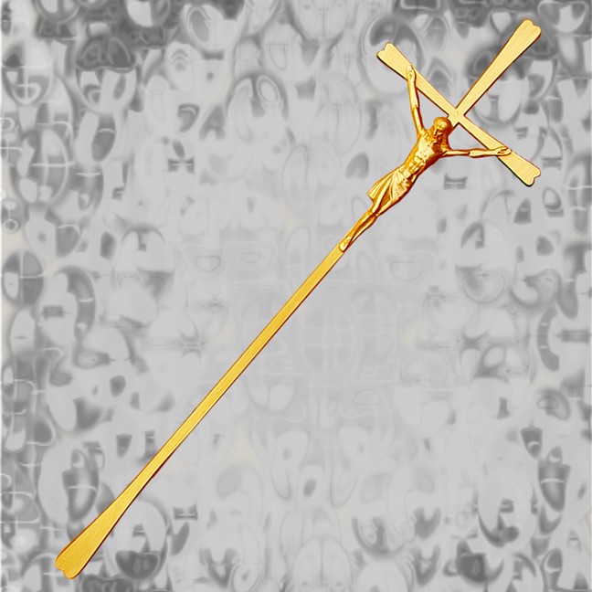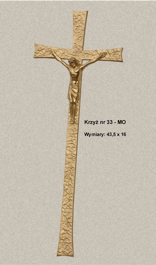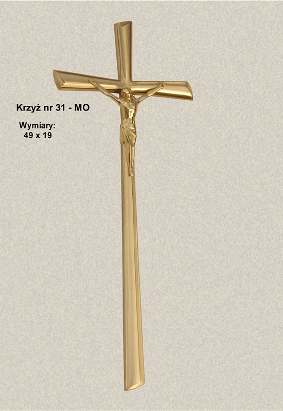 Krzyż wykonany z mosiądzu. Polakierowany bezbarwnym lakierem proszkowym.