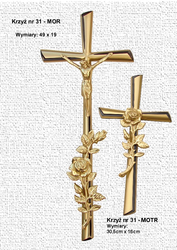 Krzyż z różą nr 43 - MOR wykonany z mosiądzu.