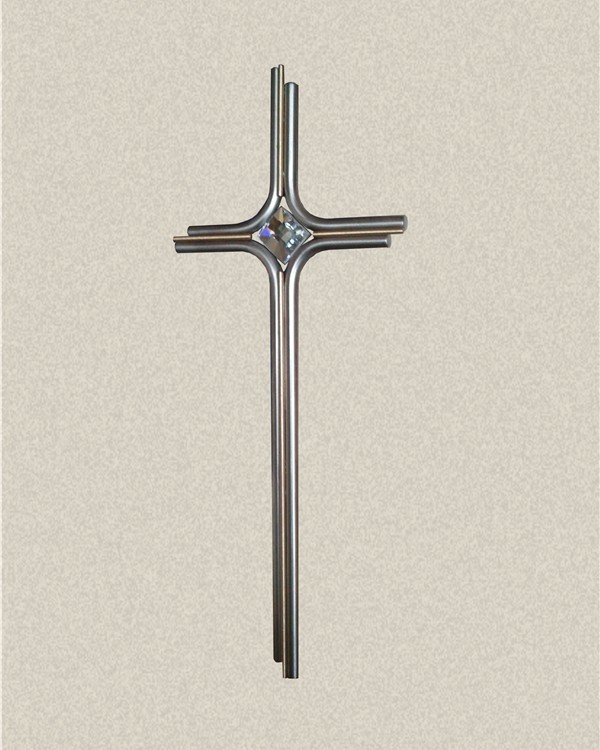 Krzyż z pręta nierdzewnego Ø 8mm z kryształem Swarovskiego.