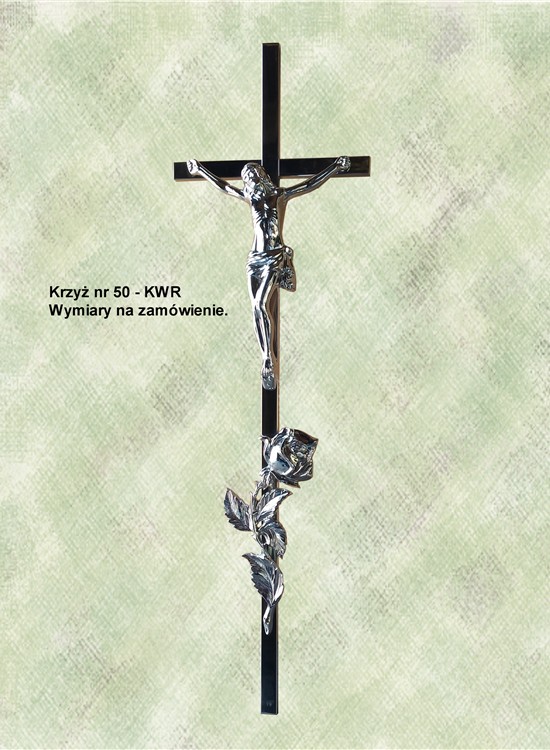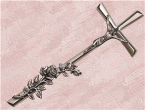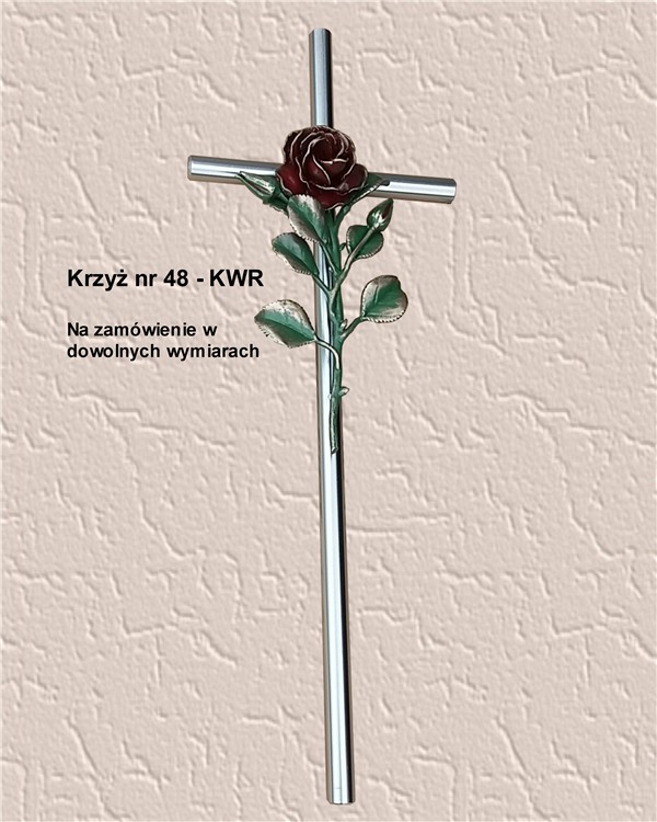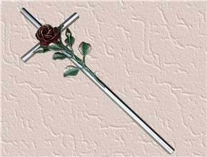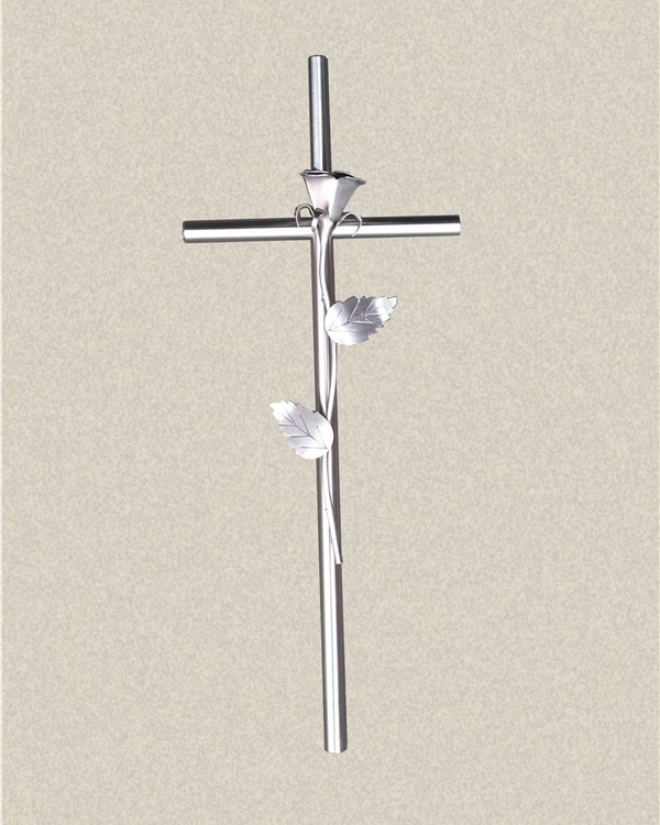 Krzyż z różą wykonany z aluminium. Polakierowany bezbarwnym lakierem proszkowym.