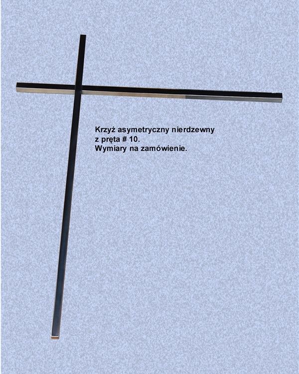 Krzyż asymetryczny nierdzewny wykonany z pręta kwadratowego # 10 mm. Wykonywany na zaówienie.