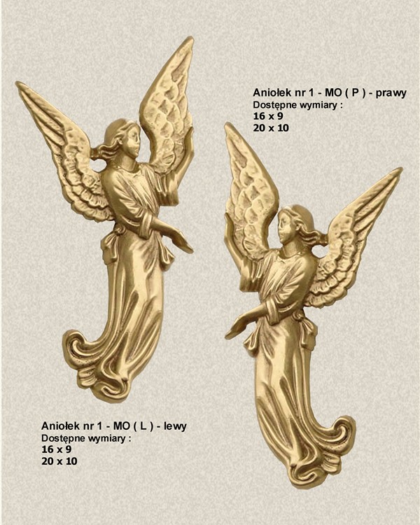 Aniołek nr 1 - MO wykonany z mosiądzu, polakierowany bezbarwnym lakierem proszkowym.