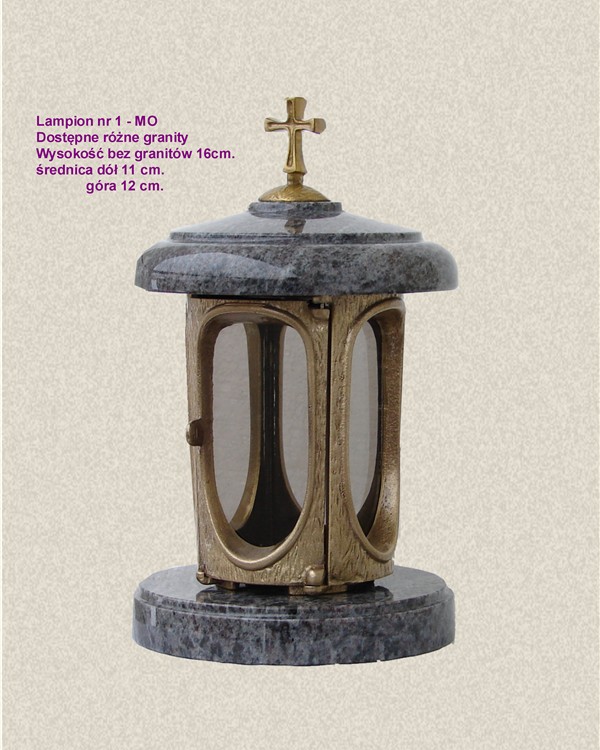 Lampion mosiężny z granitowymi krążkami. Szybki mogą być żaroodporne.