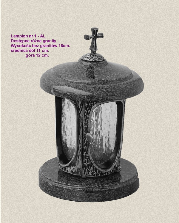 Lampion aluminiowy z granitowymi krążkami. Szybki mogą być żaroodporne.